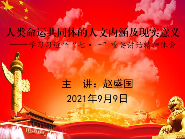 讲座预告:《人类命运共同体的人文内涵及现实意义——学习习近平“七·一”重要讲话精神体会》——赵盛国