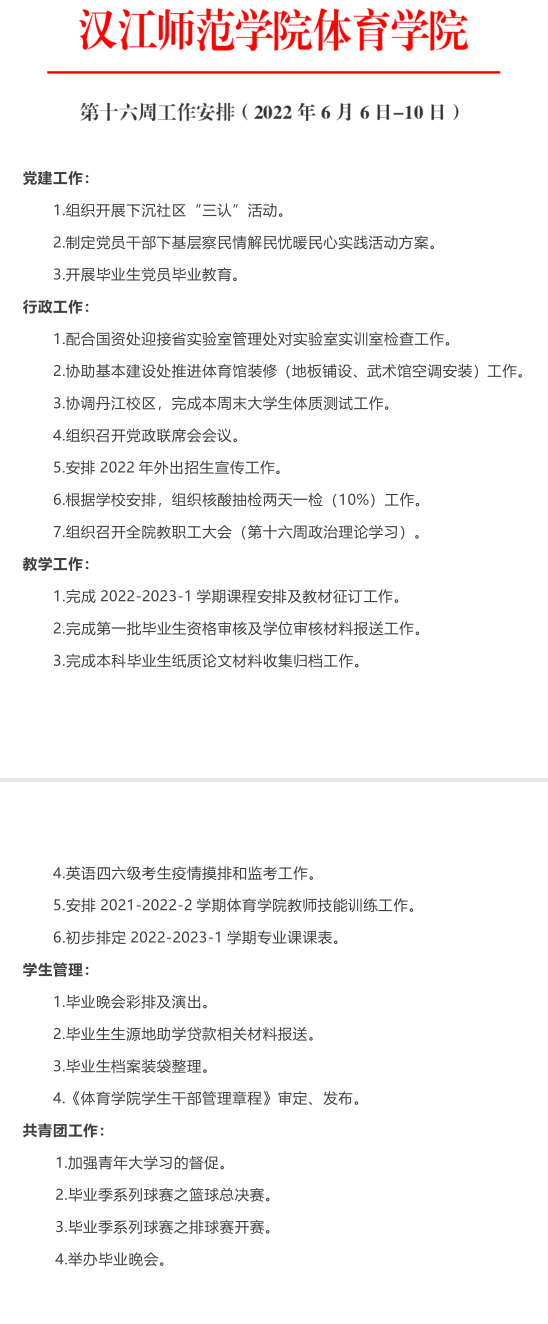 威廉希尔第十六周工作安排(2022年6月6日-6月10日)