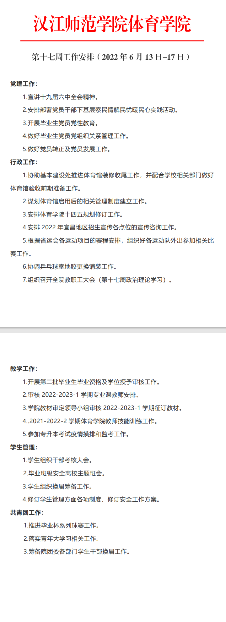 威廉希尔第十七周工作安排(2022年6月13日-6月17日)