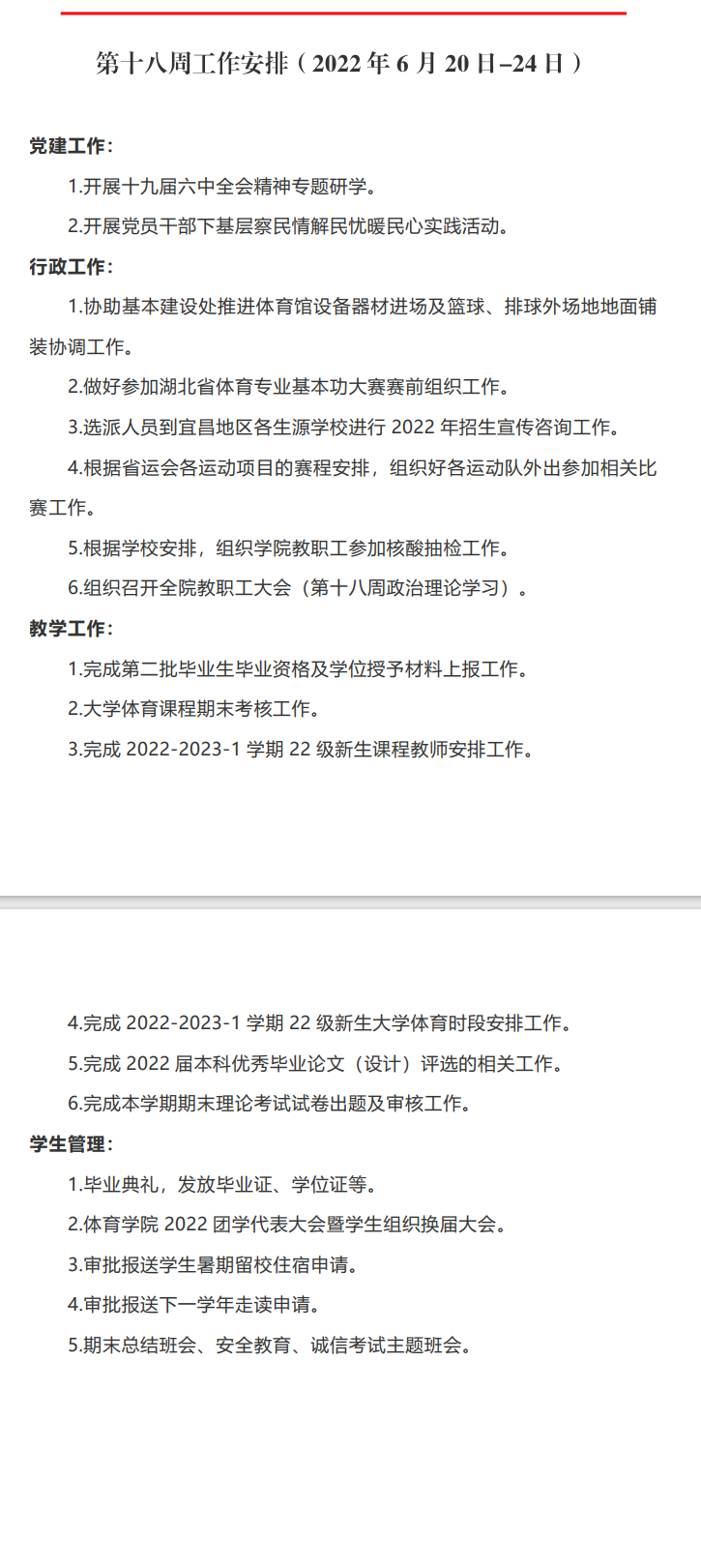 威廉希尔第十八周工作安排(2022年6月20-6月24日)