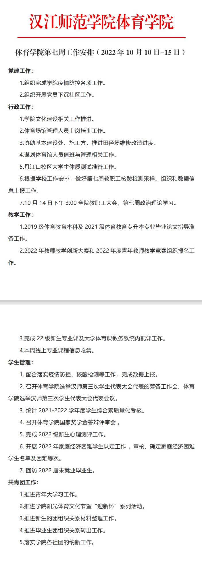 威廉希尔第七周工作安排(2022年10月10日-15日)