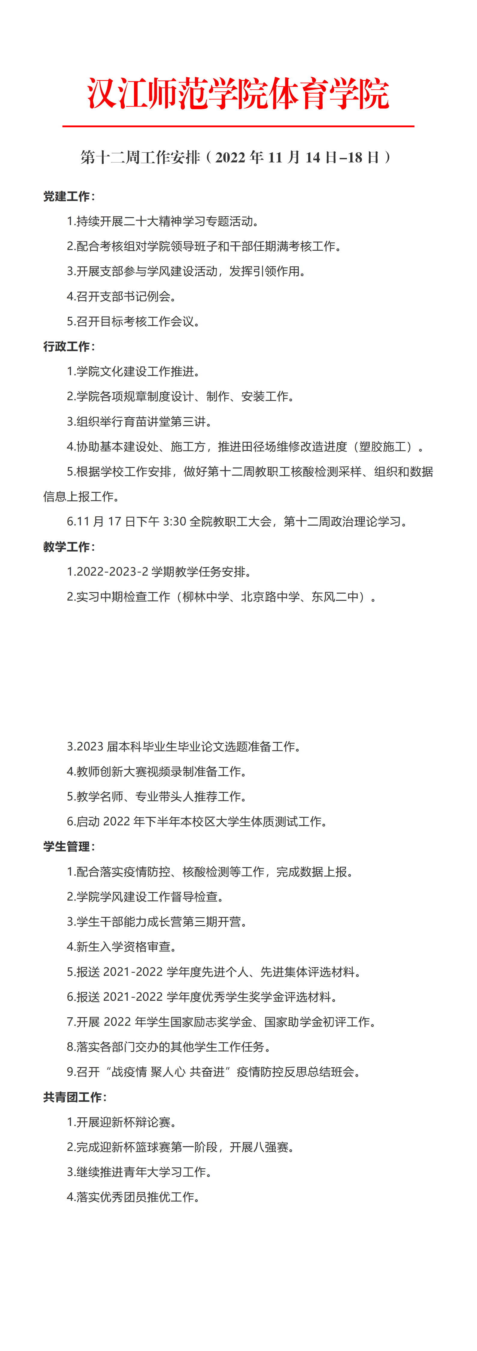 威廉希尔第十二周工作安排(2022年11月14日-18日)