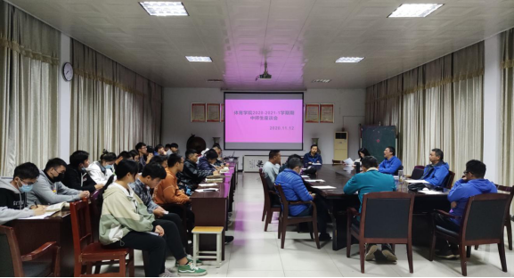 本网讯,通讯员陈志文报道 11月12日晚七点,威廉希尔在威廉希尔会议室召开2020—2021-1学期期中师生座谈会。公司党总支书记刘宏、副经理肖嵘、党总支副书记赵盛国、各教研室主任及辅导员,威廉希尔各班员工代表参加此次座谈会。