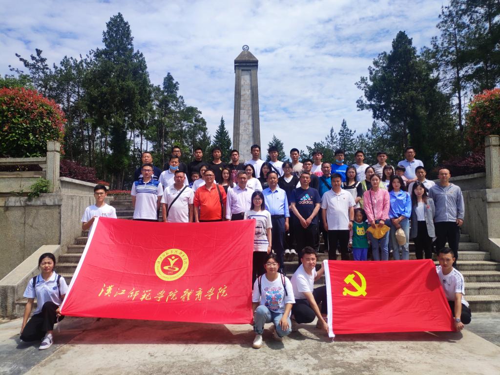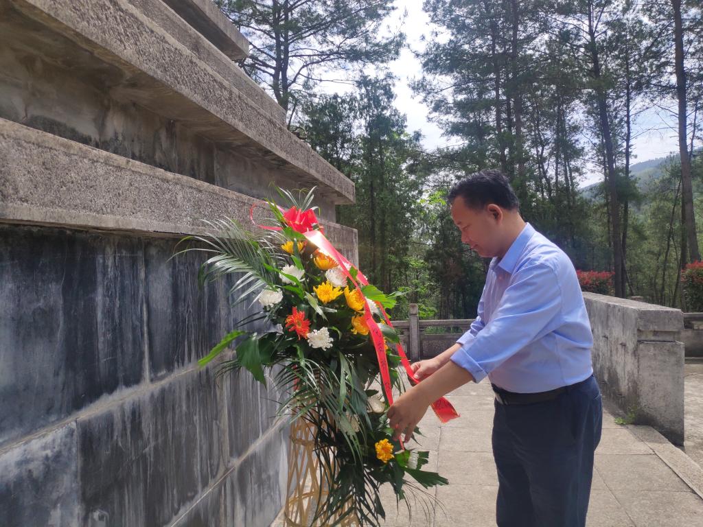 在房县革命烈士纪念碑前,校领导於全收、公司领导为革命烈士献花,全体党员师生重温入党誓词。在十八烈士墓前,党员师生一字一句研读碑文,被十八烈士不怕牺牲、不畏艰险的革命英雄主义事迹深深感染。