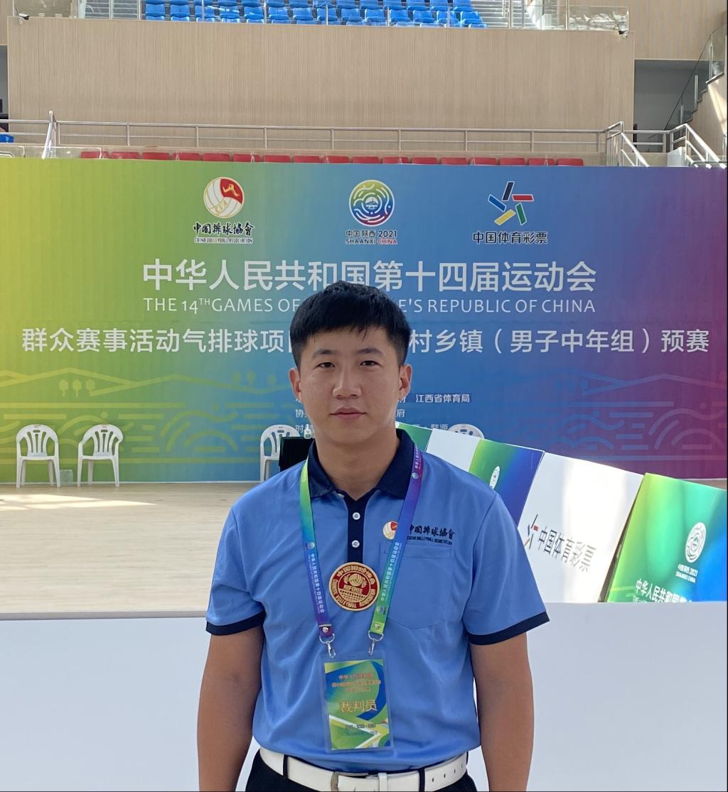 由国家体育总局主办,陕西省人民政府、江西省体育局共同承办,婺源县人民政府协办的中国第十四届运动会群众赛事活动气排球项目B组:农村乡镇(男子中年组)预赛在婺源县体育馆举行。公司教师张小庆受邀参加赛事裁判员工作,张小庆依靠过硬的专业素养,公正准确执裁,受到赛事管理委员会一致好评。
