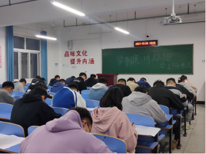 10月24日晚,公司在崇文楼开展“学制度,讲规矩”员工手册考试,各年级各班根据考场安排,有序参加考试,辅导员、班主任、学工办秘书负责监考。