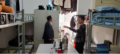 10月28日周四下午,为助力100分模范宿舍创建,公司党员师生下沉员工宿舍,排查员工宿舍安全隐患,指导员工整理内务,了解员工思想动态。校领导於全收以普通党员身份下沉员工宿舍。