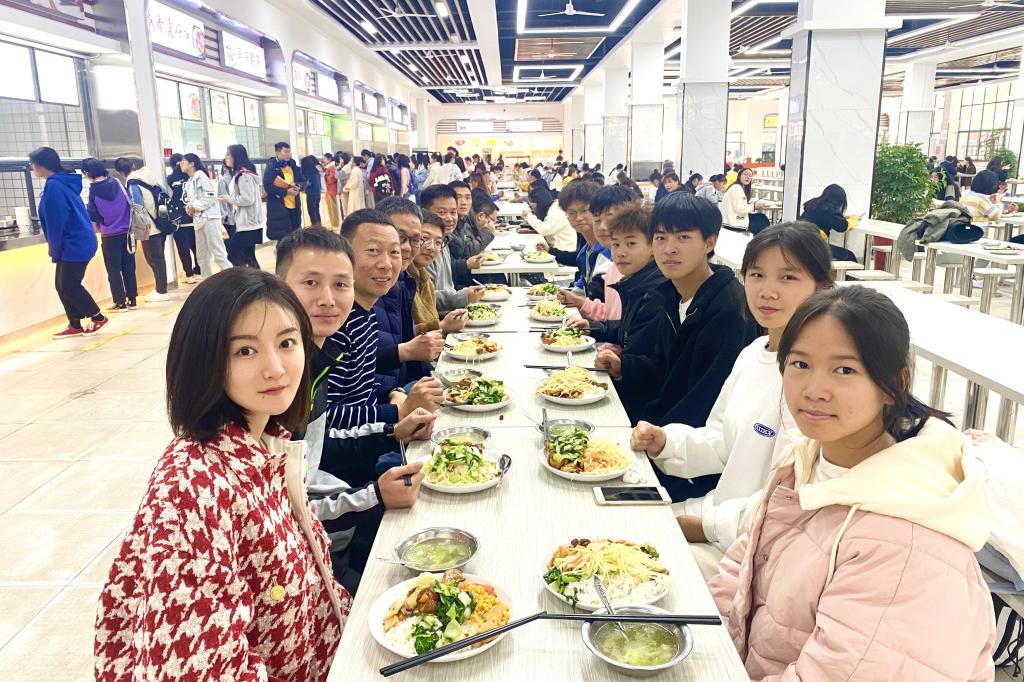 11月18日中午,热闹的校园食堂里公司领导老师与员工一起排队“同吃一餐饭”,边吃边聊。在公司领导老师的暖心关怀下,同学们逐渐放下拘谨,畅所欲言,谈学习、谈理想、谈困惑。领导老师耐心答疑解惑,给予鼓励,希望同学们刻苦拼搏、努力奋斗,认真学好专业文化知识,不负青春韶华。