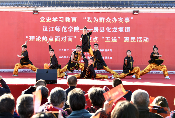 11月30日,公司师生随公司宣传部前往“理论热点面对面”示范点化龙村开展“五送”惠民活动。校领导周进芳带领120多名师生为村民送理论、送法律、送技术、送文化、送致富信息。公司精心准备了三个文艺节目,共计22名师生参与,与艺术公司、文公司等公司合力完成文艺表演,助力“五送”活动。