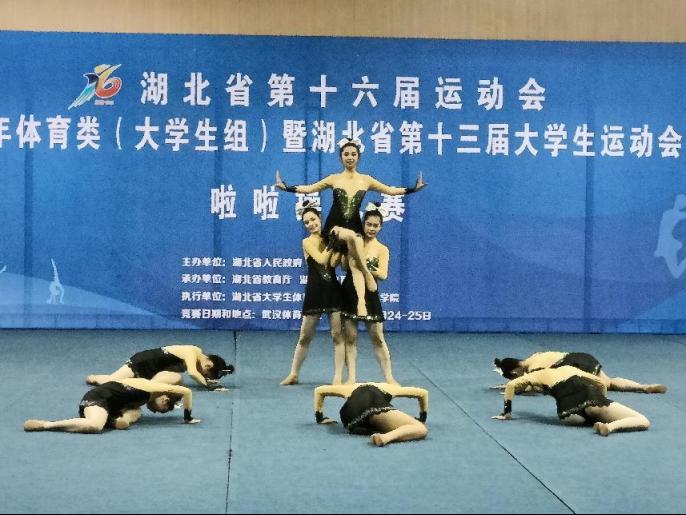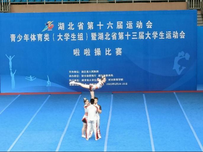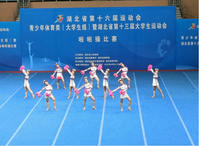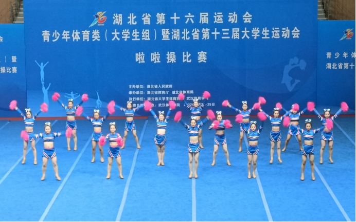 本次比赛由湖北省人民政府举办,是四年一届的省运会。比赛共有甲组普通院校、乙组体育院校两个组别的14个单项比赛,来自全省43所高校的811名啦啦操运动员同场竞技,花球、技巧、爵士等各参赛项目精彩纷呈。公司啦啦操代表队参加了甲组小团体技巧、集体花球自选及规定爵士三个单项,乙组规定花球单项。在比赛期间,队员们团结一致,互相鼓励,凭借出色的编排及完美的表现赢得了现场观众们的热烈掌声,通过预赛、决赛激烈角逐,最终两个项目进入前八名,其中甲组小团体技巧喜获银牌。