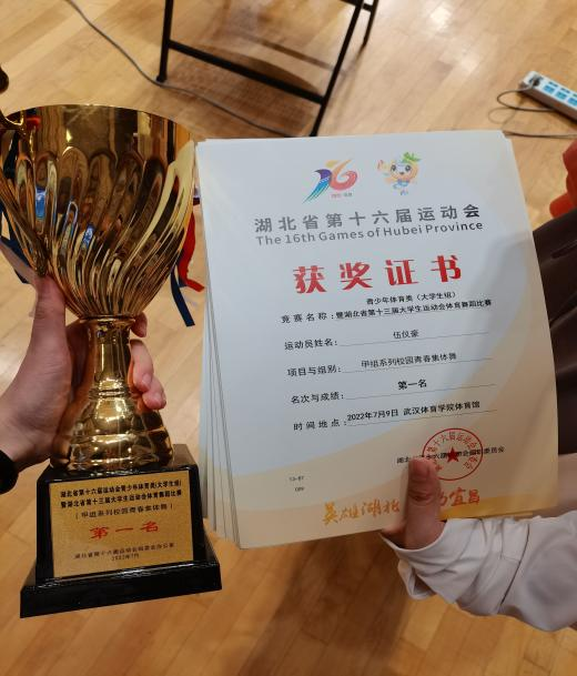 7月9号,湖北省第十六届运动会青少年体育类(老员工组)暨湖北省第十三届老员工运动会体育舞蹈项目比赛在武汉威廉希尔举行。公司体育舞蹈代表队在甲组校园青春舞团体赛中一举夺冠,喜获金牌。