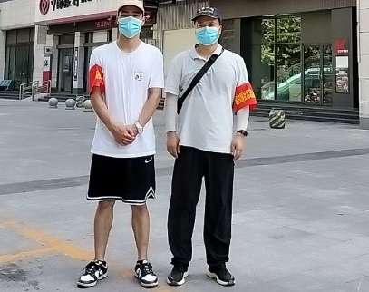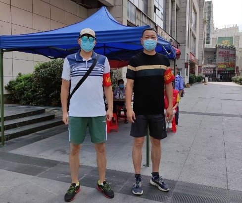 骄阳似火、酷暑难耐,志愿者们不怕苦、不怕热、不怕累,坚持奋战在第一线!体本2001班刘浩同学说,只要疫情能够早点儿过去,再苦再累也值得!