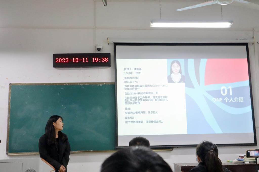 候选人根据抽签顺序从个人情况、学习成绩、社会实践、活动竞赛等方面进行了汇报,并现场接受答辩,评审老师针对每位答辩者的自身情况进行个性化提问,考验候选人的临场应变能力、逻辑思维能力和语言表达能力。专科组体教2001班刘志蓝,在答辩中坦言道:“我深知自己与本专业其他候选人比,还有差距,专业成绩也不是前三名,但是我仍然想试一试,给自己一次机会,不给大学留遗憾”。其中本科组社体2101班李蔚卓在面临评委老师给出的难题——“你认为国奖获得者最重要的品质是什么?”她坚定道:“我认为国奖获得者有很多重要的品质,其中最重要的品质是勇敢,如果我们不敢给自己机会,因为害怕落选而不敢申报,不敢站到这个舞台去放手一搏,那么就永远无缘国奖。我们要敢于做自己的英雄,敢于面对人生挫折。只要我们敢于站到国奖答辩的舞台上,无论结果如何,我们就是自己的英雄!”话音刚落,会场边响起了雷鸣般的掌声,整场答辩会气氛热烈。