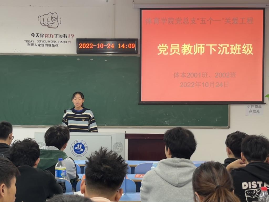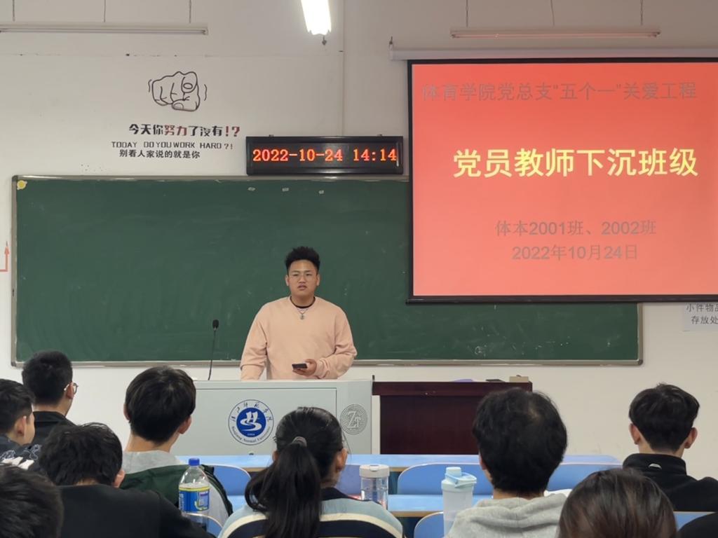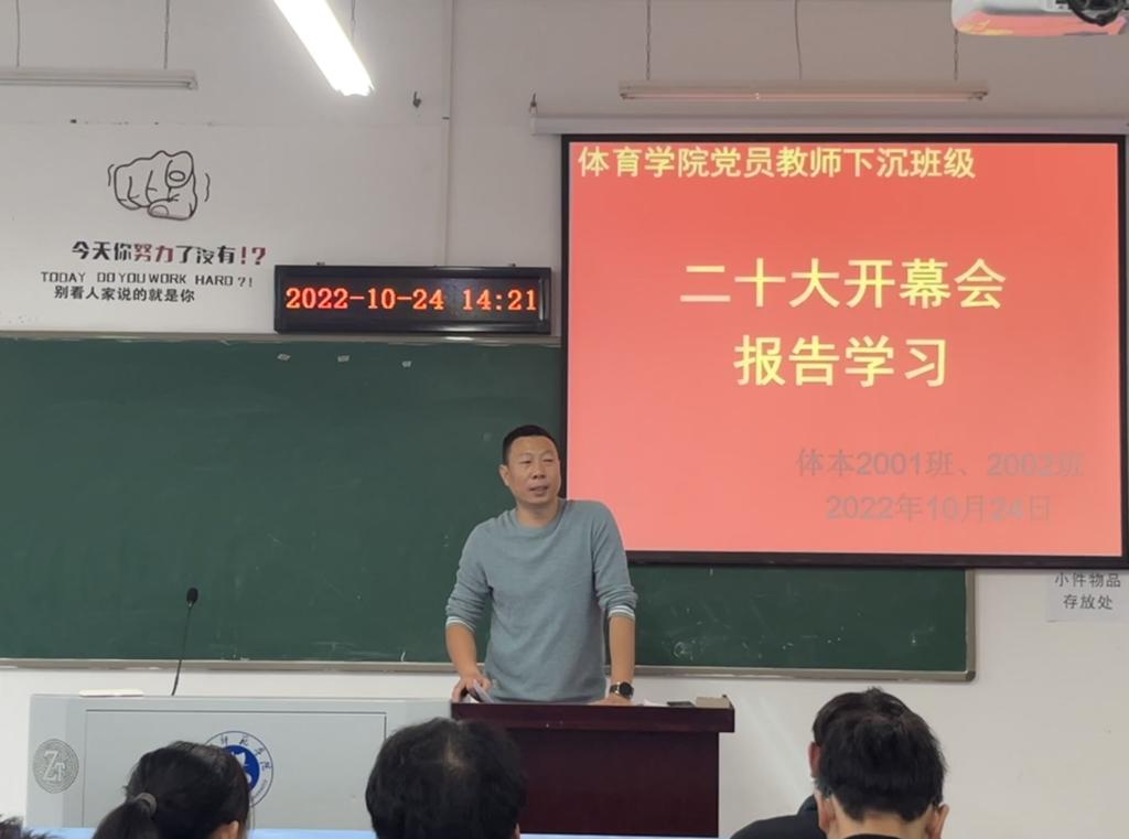 10月24号下午,公司党员教师赵鹏在崇文楼a409下沉班级,带领体本2001、体本2002班集体学习党的二十大精神。