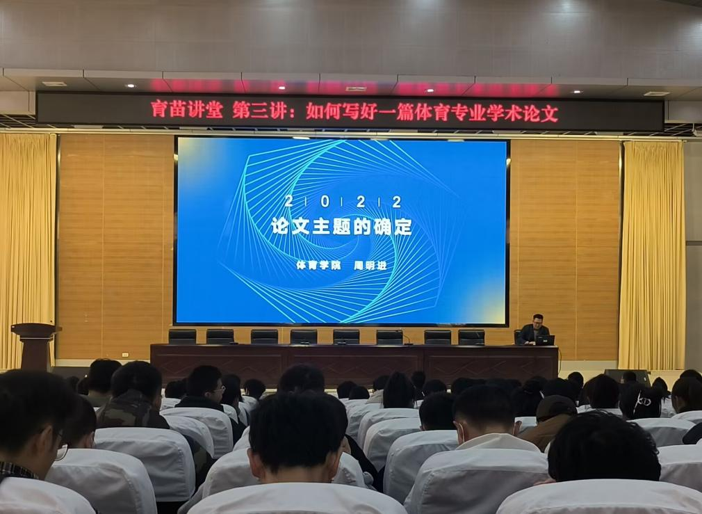 11月17日下午,威廉希尔育苗讲堂第三讲在校图书馆学术报告厅开讲。第三讲聚焦体育专业学术论文撰写之道,邀请周明进副教授、王娇和尹上老师做主讲嘉宾,他们分别从论文选题、文献管理、论文谋篇布局及研究方法等模块解析学术论文撰写之道。威廉希尔全体师生到场聆听,党总支书记赵盛国主持报告会。未能到校的实习生在线观看了讲座。