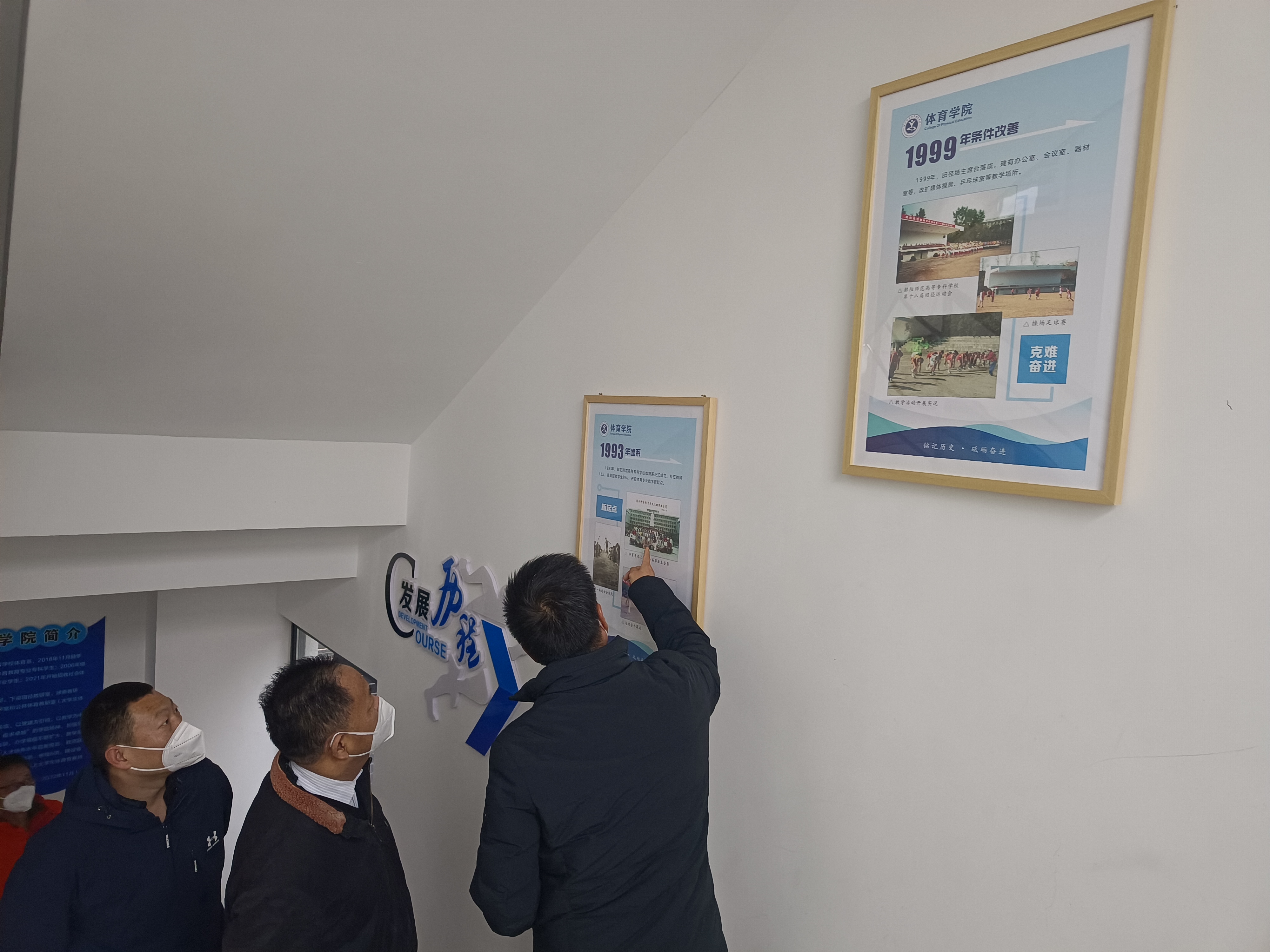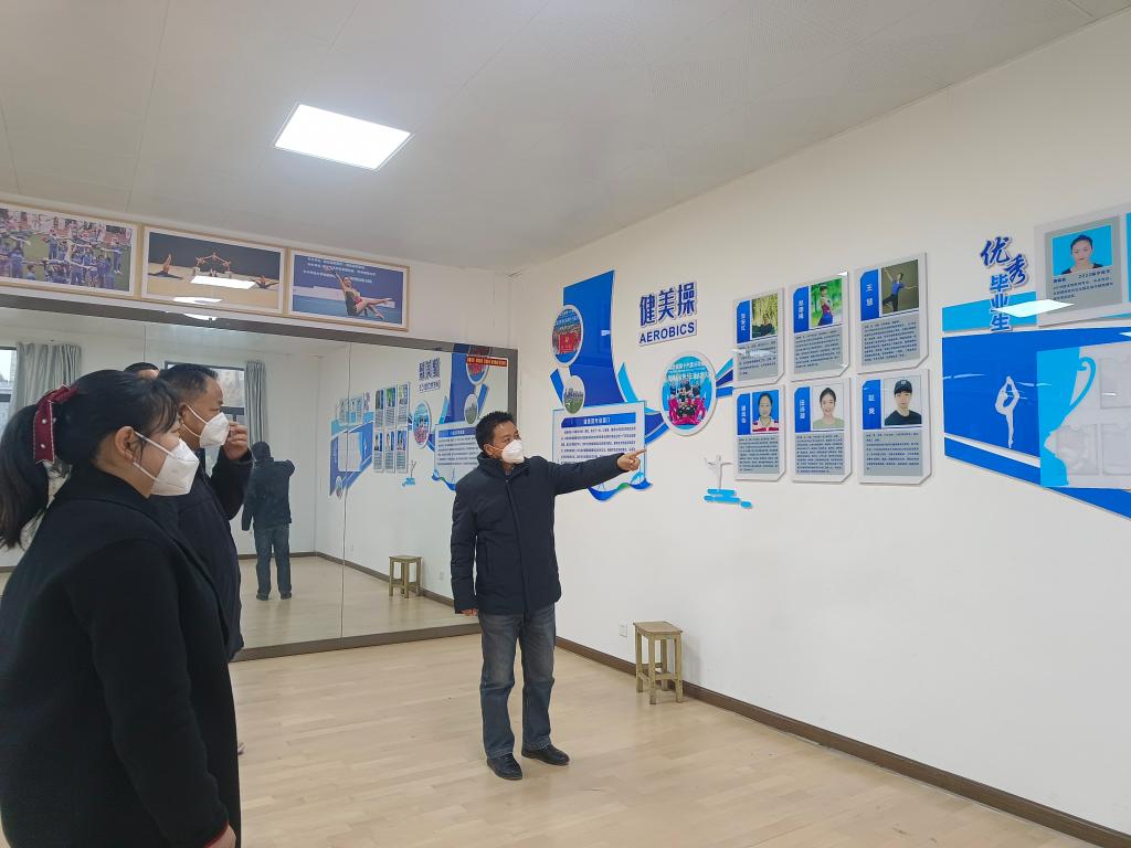 学习会正式开始之前,公司党总支书记赵盛国、副经理赵鹏、办公室主任张鸿带领於董事长参观体育馆的文化建设成果,逐一走访篮球馆、排球馆、武术馆、健美操、体育舞蹈、健身健美实训室。参观过程中,赵盛国逐一解释每处文化设计的来历、用意,於董事长频频点头,并给予高度认可。