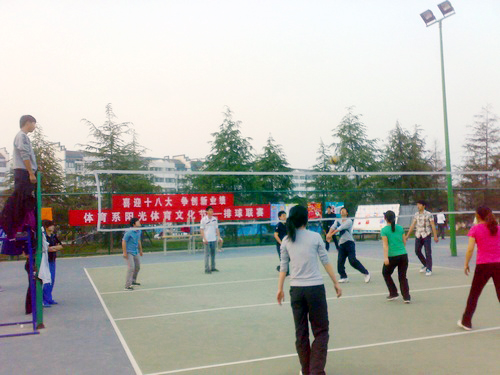 本网讯 通讯员张文杰报道:4月10日下午,体育系阳光体育文化节系列活动之排球联赛在校排球场开幕。