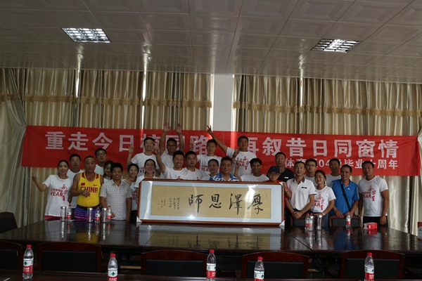 最后,体育系04级全体同学向体育系敬赠了“厚泽恩师”的书法匾额,集体合影留恋。