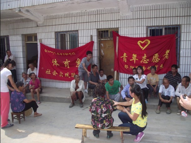 为了认真落实团中央《“我的中国梦”主题教育实践活动总体方案》等相关文件精神,充分发挥好社会实践在高校思想政治教育“立德树人”根本任务中的作用和优势,引导广大青年员工关注社会、深入基层,在实践中增知识、长才干、提素质。郧阳师专体育系暑期社会实践服务队于7月6日抵达郧县柳陂镇,开展了为期两天以“追寻实践中国梦,传递青春正能量”为主题的暑期社会实践活动。