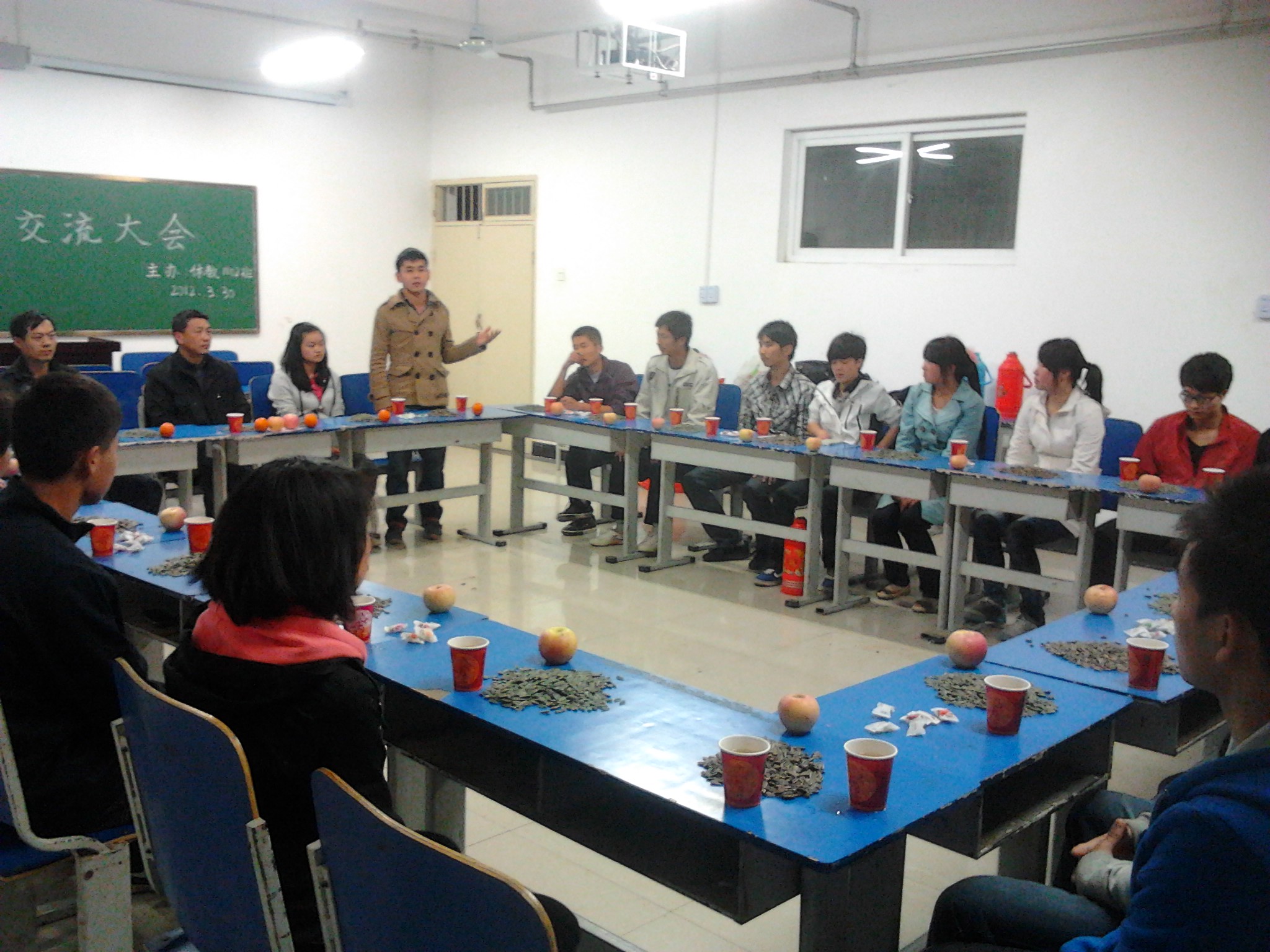 体育系主任肖嵘对同学们说:“今天来与同学们交流,我和班主任就作为班里的一员,大家共同讨论教学管理的话题,欢迎大家提意见,给建议。”肖主任以谈心的方式和同学们交流了自己的求学经历,和同学们互动提问。有员工提出“体育生爱上专业课,不喜欢上理论课,导致理论课出勤率相对较低。”“兴趣是可以培养的。”肖主任以自己求学的故事告诉大家,学习兴趣的判断不能太绝对,理论课和专业课之间是有着相辅相成的内在联系的,学习必要的理论知识往往有助于专业技能的提高。并且,作为一个体育生不仅仅要会做动作,更加要能说、会说。有员工喜欢网络游戏,肖主任向大家介绍了如何戒掉“网游”、转移兴趣的好方法。交流会一直持续到晚上9点30分,同学们依旧兴致勃勃。