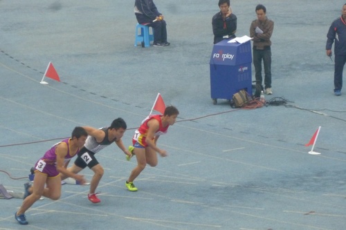 3号选手胡立业在男子100米赛道上勇超省大运会记录