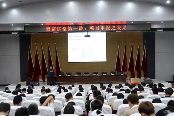 4月21日晚,威廉希尔“育苗讲堂”在校图书馆学术报告厅举行。党委副书记周明华以“项目申报之我见”为题为“育苗讲堂”开讲。威廉希尔全体教职工及本科生到场聆听,经理肖嵘主持讲座。