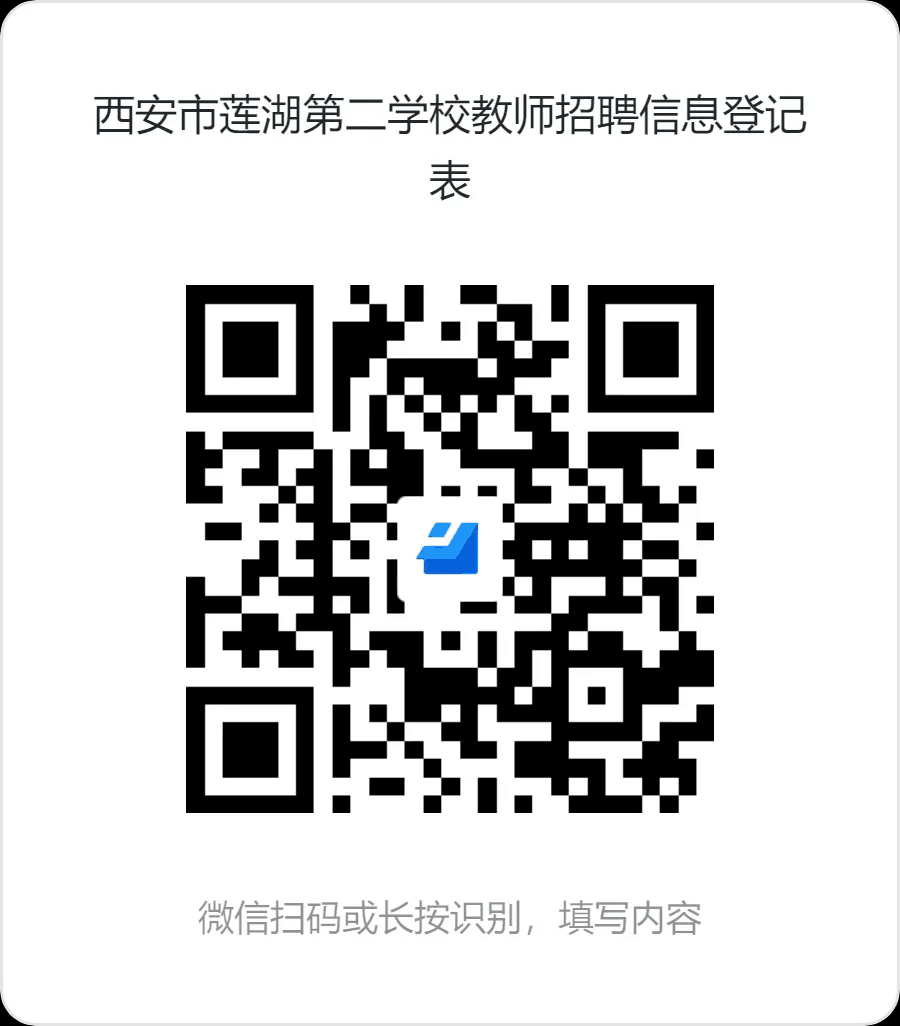 1.报名:应聘人员扫描二维码在线填写《教师应聘信息登记表》并将个人简历送至西安市莲湖第二公司传达室。