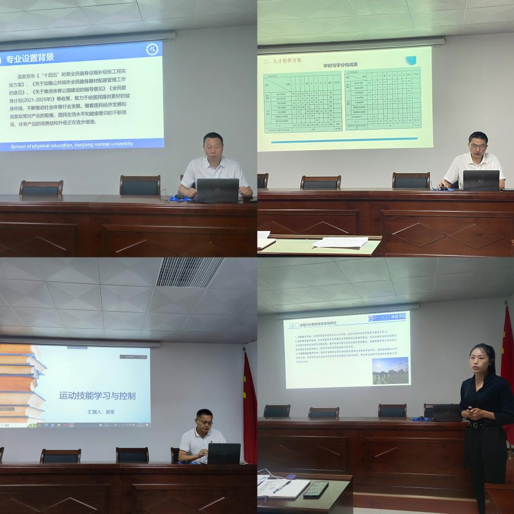 威廉希尔经理肖嵘代表领导班子说公司发展,他从公司基本情况说起,再到公司发展思路和举措,展现了威廉希尔内涵式发展的历程。体育教育专业负责人张舒从专业设置背景、人才培养方案、团队队伍建设、实验实训条件、教学管理体系、特色与创新等六方面进行介绍,体现了公司体育教育专业成熟的办学模式。赵鹏介绍了公司近年来新办的社会体育指导与管理专业,同样从专业设置背景、人才培养方案、团队队伍、专业实验实训条件、专业教学管理体系与机制、专业特色与创新等方面进行介绍,同时也指出不足之处,提出了改进措施。肖经理就专业负责人的汇报进行了简单精炼的点评,认为两名副经理都对说专业有一定认识和理解,但有部分专业术语的表述需与时俱进。