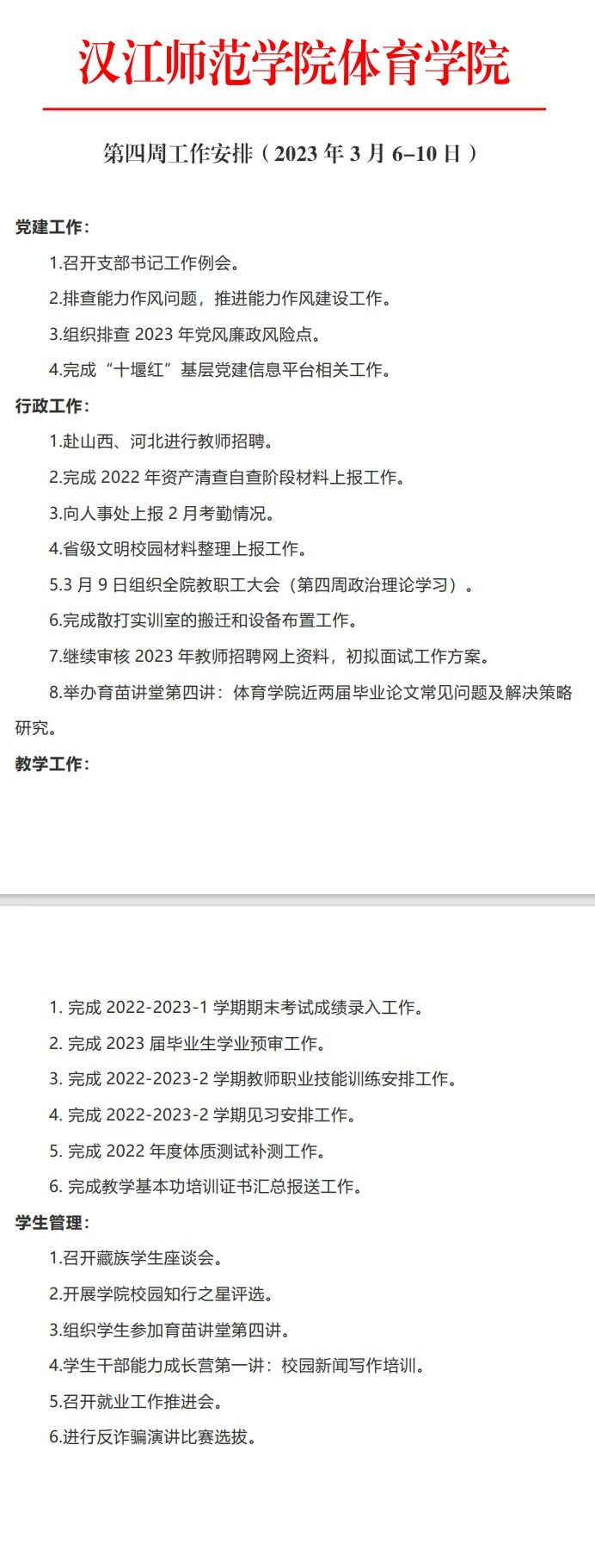 威廉希尔第四周工作安排(2023年3月6-10日)