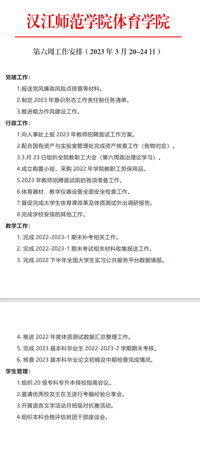 威廉希尔第六周工作安排(2023年3月20日-24日)