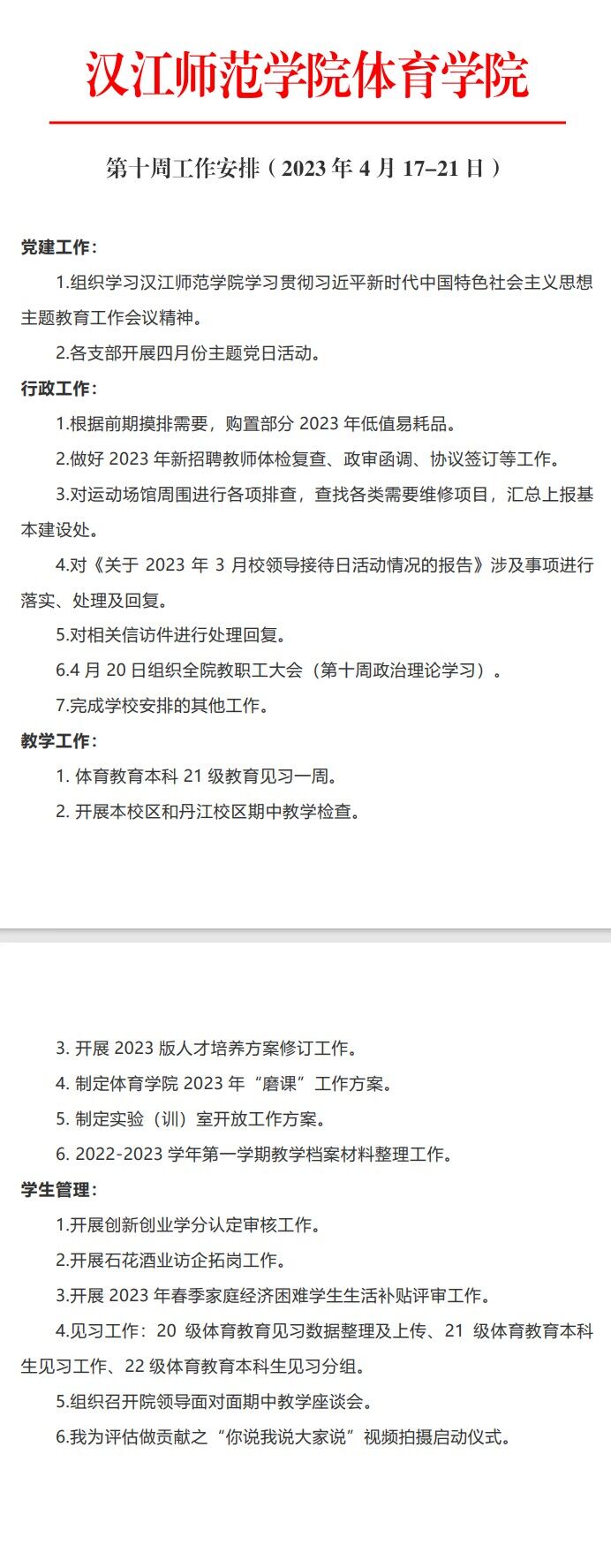 威廉希尔第十周工作安排(2023年4月17日-4月21日)