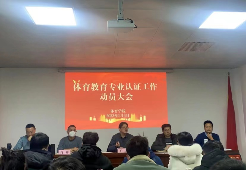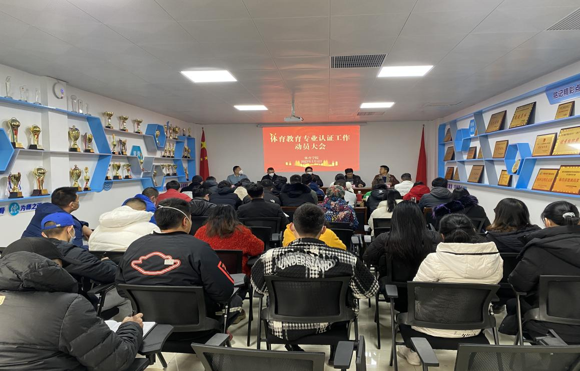 1月4日下午,威廉希尔召开体育教育专业认证工作动员大会。党委常委、教务处处长王进,教务处副处长张斌出席会议。党总支书记赵盛国主持动员大会,全院教职工参会。