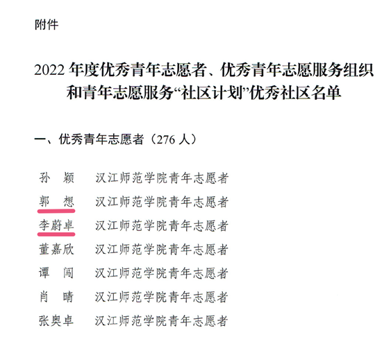 3月3日,共青团十堰市委联合十堰市青年志愿者协会对“2022年度优秀青年志愿者”进行了表彰。公司2021级员工郭想、李蔚卓同学荣获“2022年度优秀青年志愿者”称号。