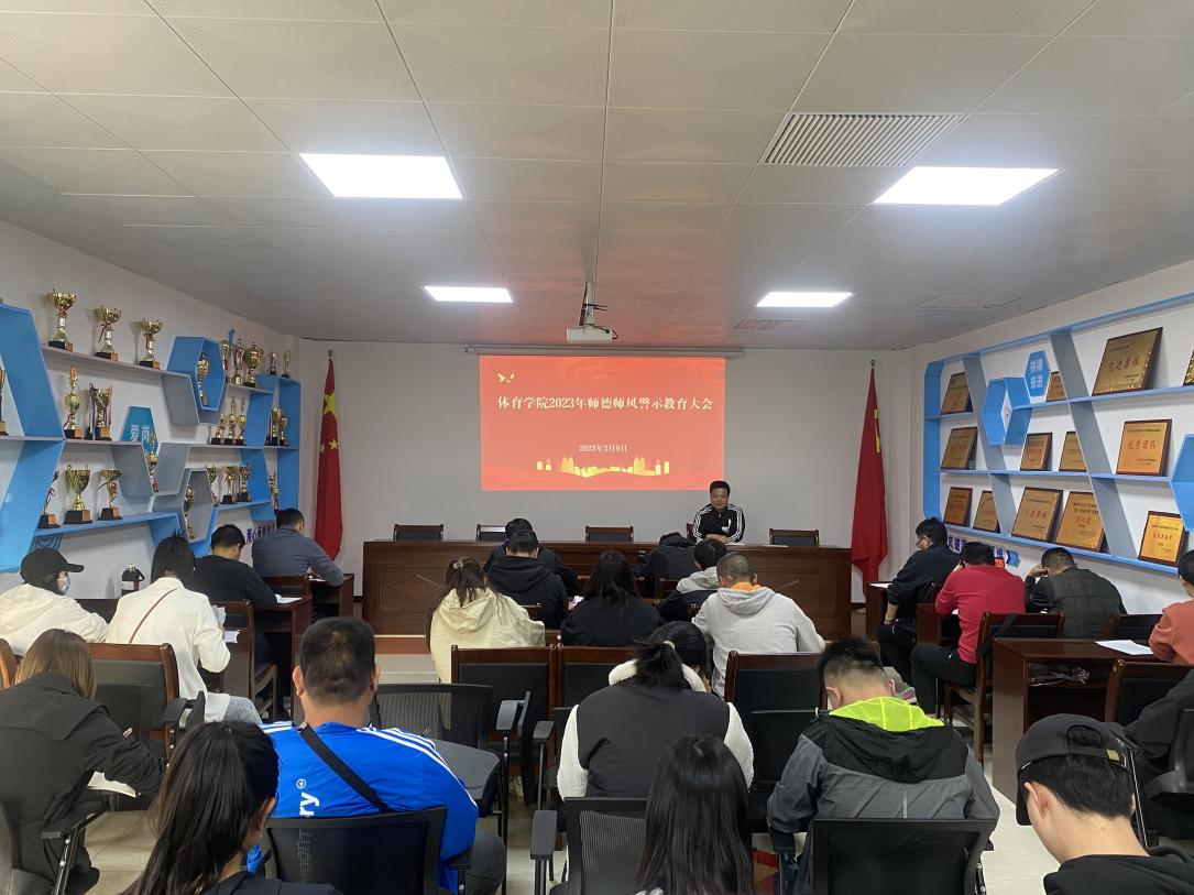 会中,赵盛国带领全体教师“以史为鉴”,以高校教师违反师德师风警示教育事件为例,告诫全体教职工要以案为鉴,牢记教训,警钟长鸣,知敬畏、存戒惧、守底线,增强法纪意识和规矩意识,最后提出要把师德师风建设贯穿到专业教学全过程、思想教育全过程、课外活动全过程和日常生活全过程,切实做到: