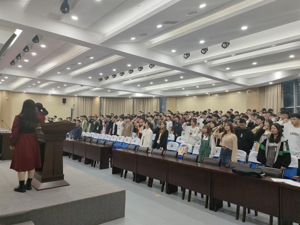 校团委副书记毛晶玥老师在讲话中鼓励青年学子要向榜样学习,不忘初心,知行合一,树立坚定的理想信念,在青春年华里,有勇气面对困难,敢于克服困难,勇于实现梦想,勇担时代重任,练就过硬本领,奏响更为昂扬的青春乐章。