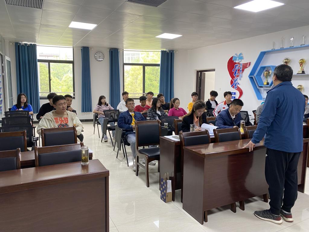 根据抽签顺序,第一个上台的是健身健美老师李雨莹。李老师将员工们集合整队,带领同学们进行热身活动,课堂上与员工们讲解身体一些部位的肌肉名称和背部肌肉的练习,演示哑铃划船动作并邀请一位同学做示范,并为其纠正错误动作。