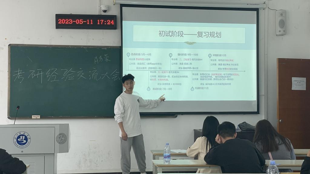经验分享环节,两位学长结合自身的考研经历,先后围绕院校选择、专业选择、备考经验、课程学习与培训以及复试注意事项等方面向大家做了详细的介绍,并就如何高效制定学习计划、如何平衡专业课与公共课复习时间给出了各自的意见,为同学们提供了参考。同时对考研动机、考研心态、参考书的选择、资料信息的收集、复习时间的安排、复习方法、应试技巧等问题,进行了细致耐心的经验分享,并对各年级的考研规划,提出针对性建议。干货满满,与会员工全神贯注,认真聆听,纷纷表示受益匪浅。