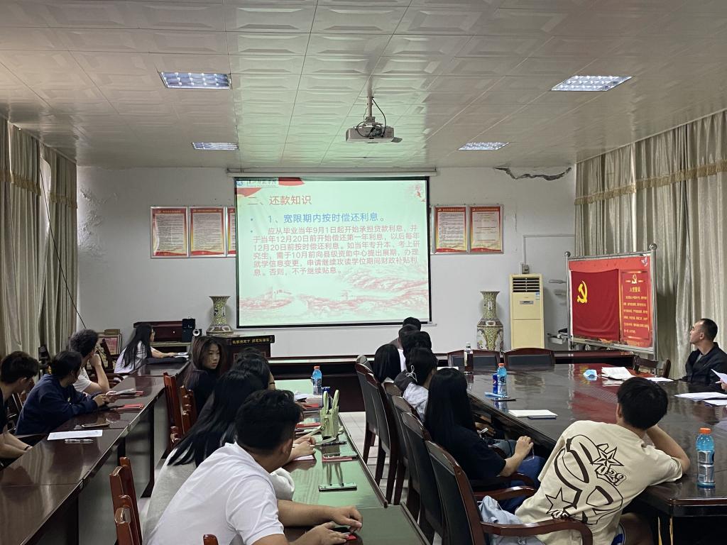会上,辅导员对2023届毕业生们大学期间对公司各项工作的支持表示感谢,希望在毕业的最后关头,能够坚守底线,遵守校纪校规,文明离校,继续在同学群体中发挥模范带头作用,重点讲解了生源地贷款员工还款及诚信教育,鼓励毕业生积极就业,以就业实际行动回馈母校。