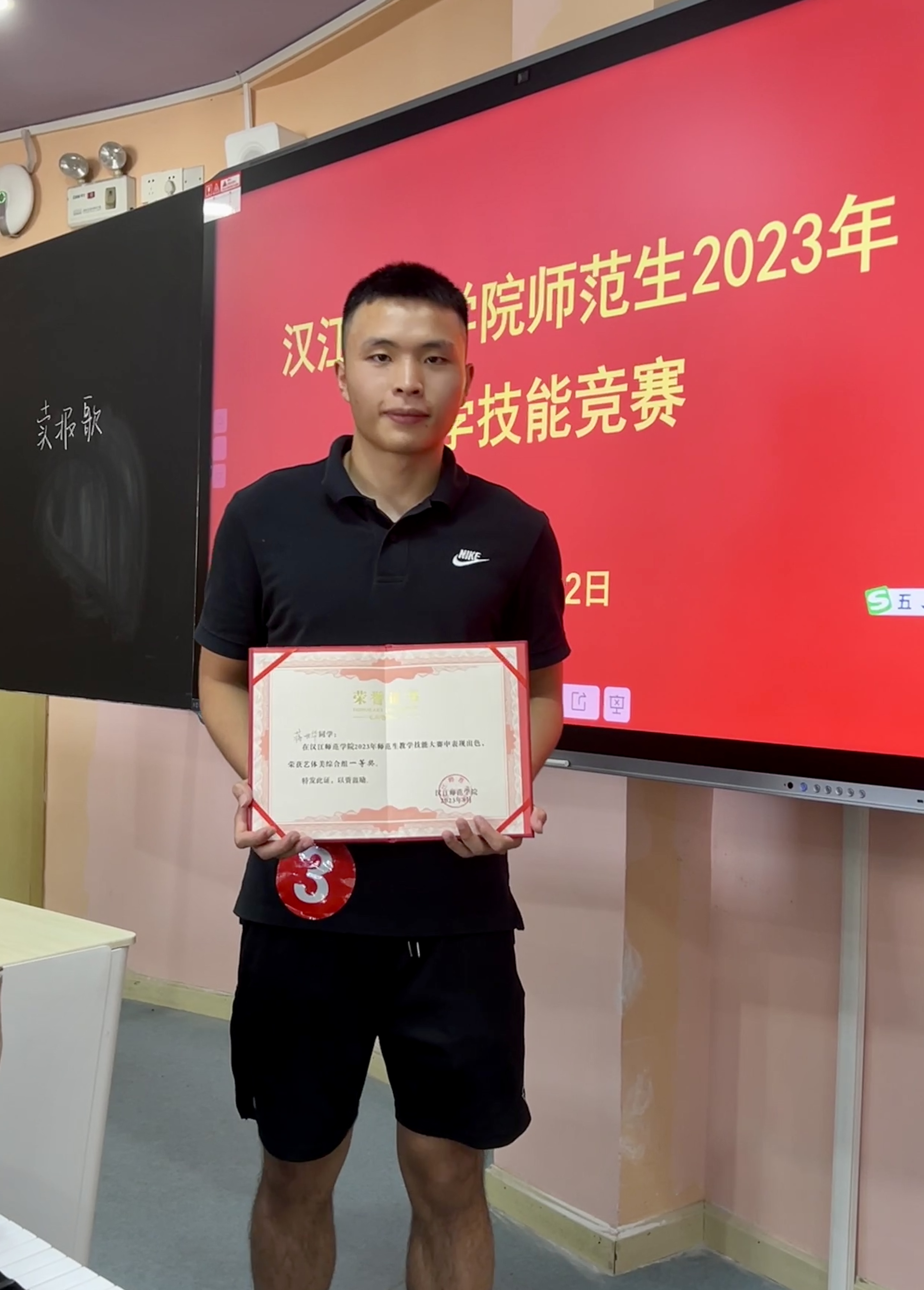 据悉,蒋世华同学自大一以来一直担任体本2002班班长,2023年1月份,他也曾代表公司参加公司举办的师范生教学技能竞赛,同样斩获一等奖,彰显了公司学子过硬的教学技能和稳定的实力。今后,公司将继续保持以赛促建、以赛促练的宗旨,搭建师范生交流展示、观摩学习的专业平台,促进师范生提升综合素养和实践能力。