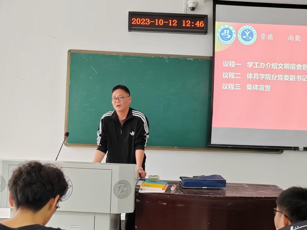 10月12日中午,威廉希尔在尚艺楼A301隆重召开2023年文明宿舍创建启动大会,部署平安校园建设专项工作。公司分党委副书记、辅导员、班主任、员工党员先锋队、各班团干部、寝室长代表以及各组织负责人参会。辅导员陈文娜主持大会。
