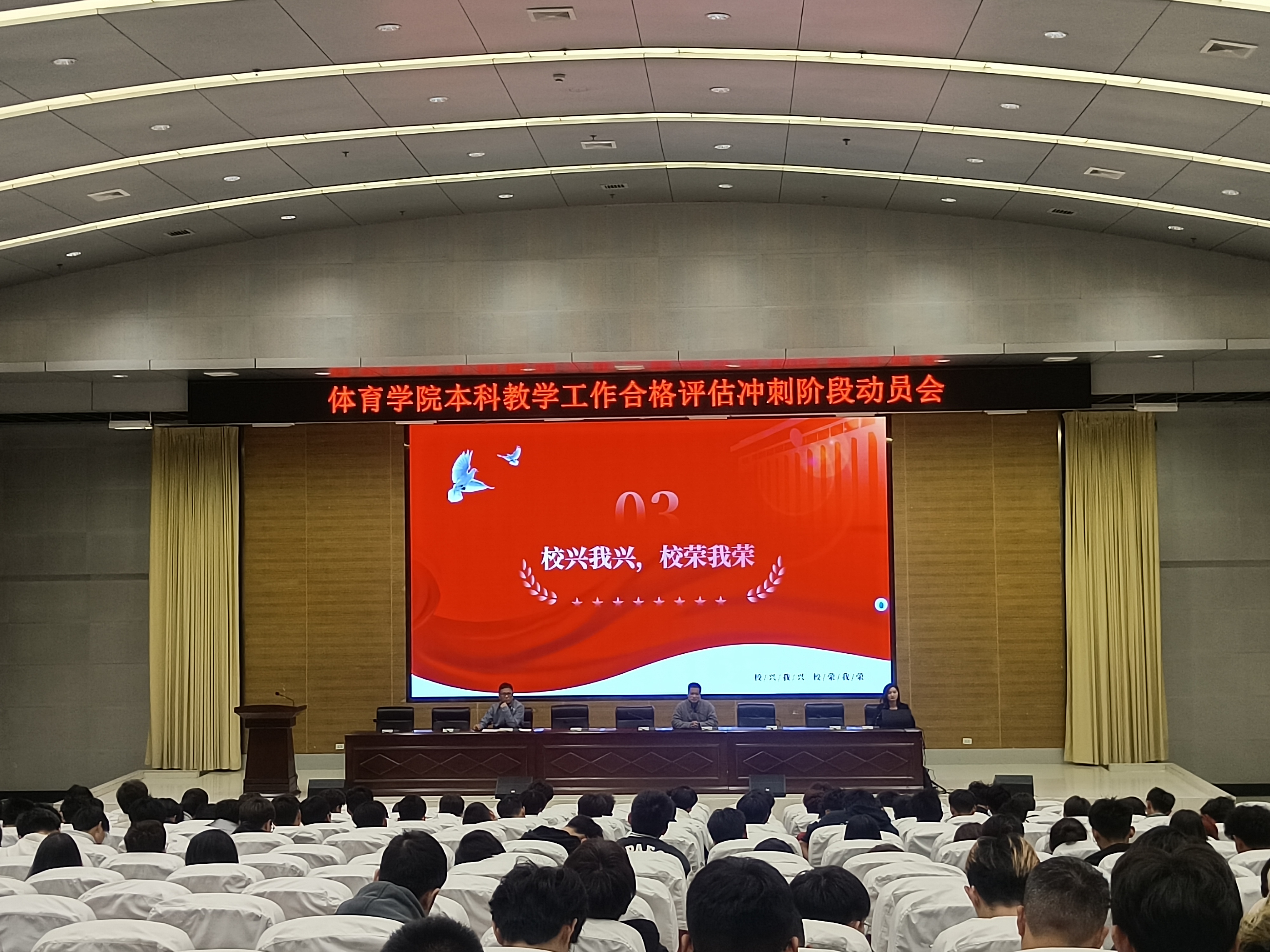 11月5日晚,威廉希尔在学术报告厅召开本科教学工作合格评估冲刺阶段动员大会,号召全院上下统一思想、凝心聚力,全力以赴做好最后阶段冲刺工作。威廉希尔分党委书记赵盛国、副书记张鸿出席会议并讲话。威廉希尔辅导员、班主任及全体员工参会,会议由学工办主任王歆辰主持。