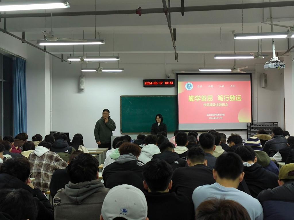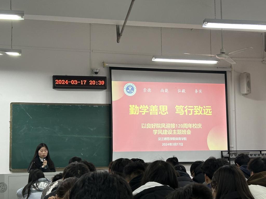 3月17日晚,威廉希尔在尚艺楼分级分批召开“勤学善思 笃行致远——以优良学风迎接120周年校庆 ”学风建设主题班会。威廉希尔各年级员工携带《员工手册》参会,威廉希尔副书记张鸿出席会议。