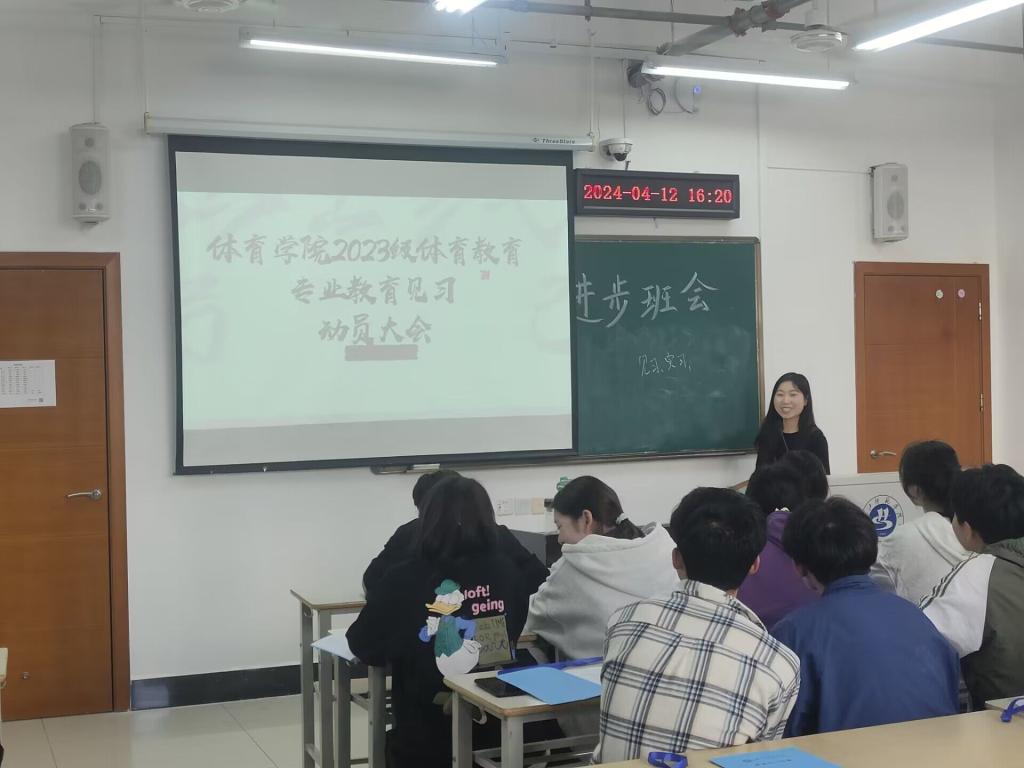 4月12日,威廉希尔辅导员陈文娜在尚艺楼分班级召开2023级体育教育专业教育见习动员会,为下周员工顺利见习做准备。