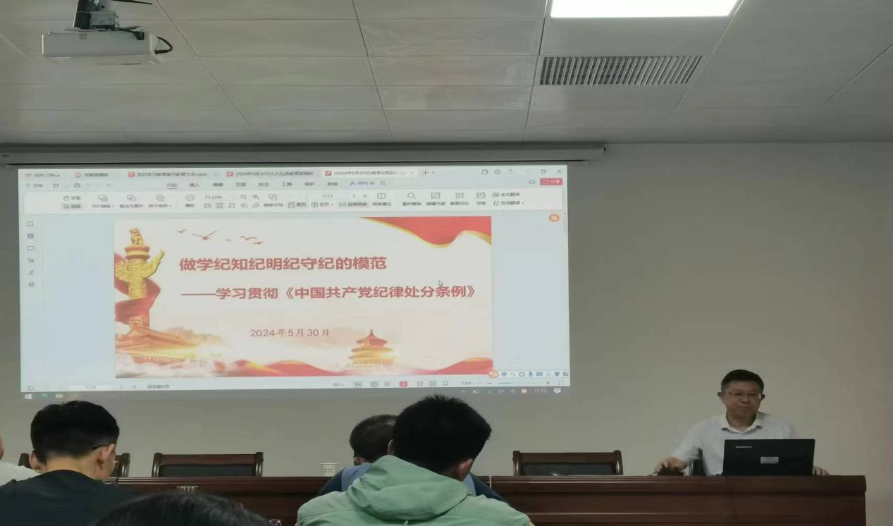 最后,赵盛国书记对校领导的讲话表示感谢,并代表院领导班子作表态发言。陈董事长的讲话为公司发展指明方向,对公司下一步发展有深刻意义。同时,分党委纪检委员田沛源老师带领大家学习了《新修订的《中国共产党纪律处分条例》的特点》,并再次强调了严明纪律管全党治全党的鲜明信号,全体党员学纪、知纪、明纪、守纪,为公司高质量发展做出更大贡献。