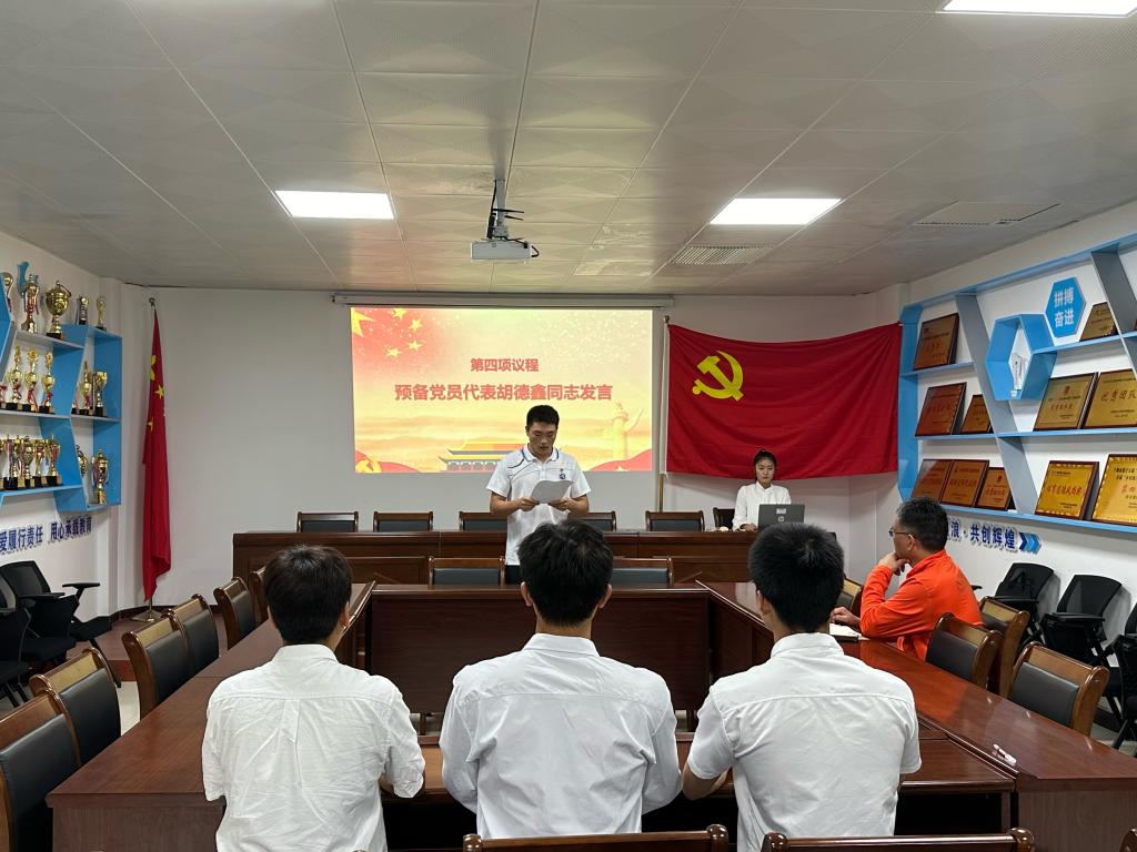 随后,胡德鑫同志作为新发展员工党员代表进行了发言。胡德鑫向党组织表达了自己的决心,一是以更高的标准要求自己;二是坚定理想信念,永远跟党走;三是强化责任担当,树立党员良好形象。
