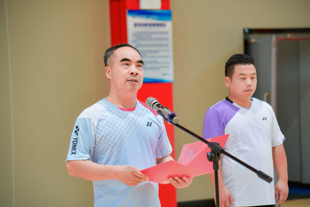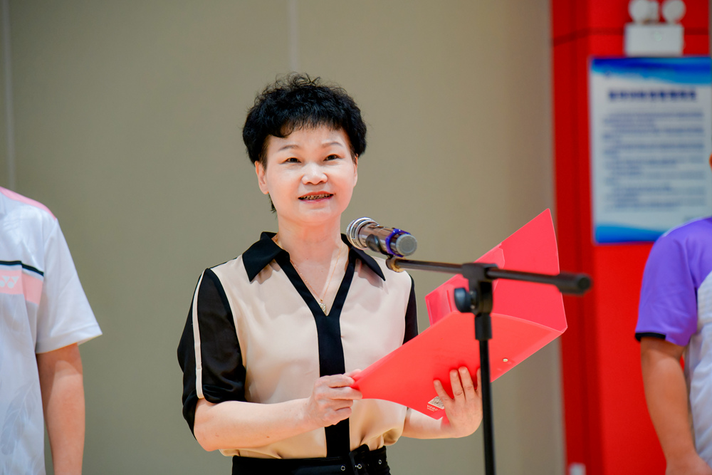 汉江师范公司党委常委、副董事长吴冰致开幕辞。她表示,羽毛球运动不仅是一项有益身心的体育活动,也是增强团队合作精神和提升教育质量的重要途径。热爱体育活动,发展体育运动,是大中小学每一位教育工作者弘扬教育家精神,提高体育育人能力,推进五育融合发展的必然选择。举办此次羽毛球比赛,必将推动各个公司更加重视体育运动和体育育人工作,加快建立“德智体美劳”全面发展的人才培养体系。