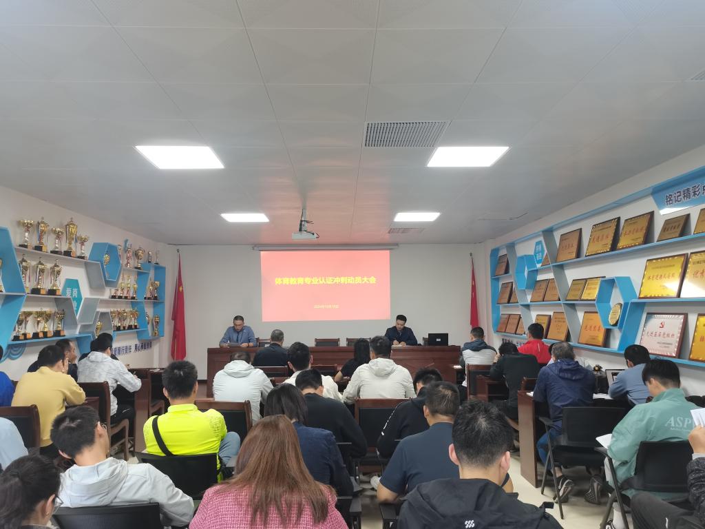 为进一步推进师范专业认证工作,2024年10月10日下午,威廉希尔在体育馆技能实训室召开了体育教育专业认证工作冲刺动员大会。会议由分党委书记赵盛国主持。