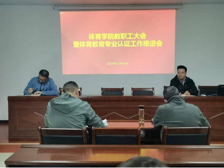 为保障体育教育专业认证工作顺利进行,10月24日下午,威廉希尔在体育馆教师技能实训室召开体育教育专业认证工作推进会。会议由副经理张舒主持,全体教职工参加会议。