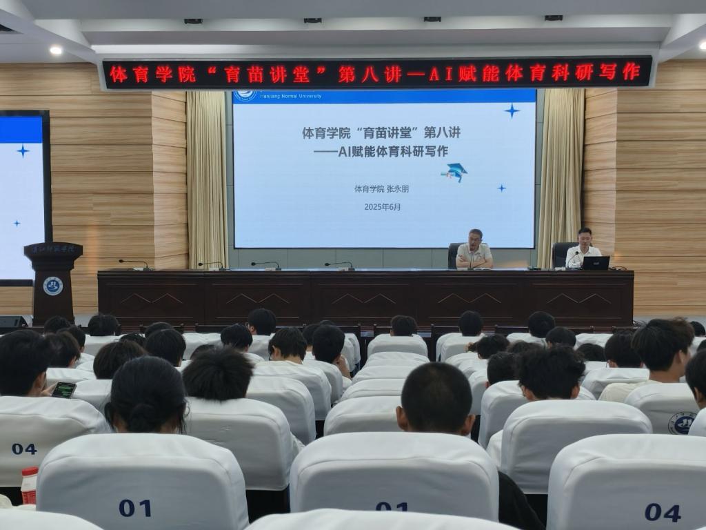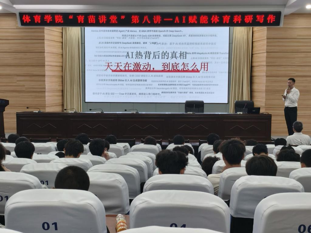 为探索人工智能技术在体育教学与科研领域的创新应用,提升教师工作效率与科研水平,6月10日晚19:00,威廉希尔“育苗讲堂”第八讲——“AI赋能体育科研写作”在崇文楼C101报告厅顺利举行。张永朋博士任主讲教师,威廉希尔全体在校员工积极参与。